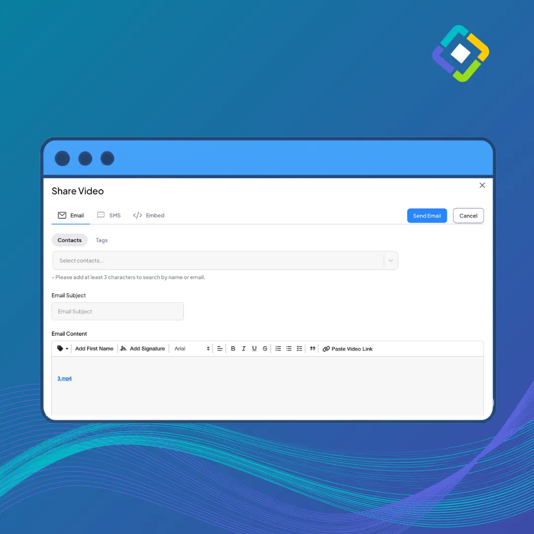 You can choose exactly who should receive your video—either by entering names manually or selecting from tags (like “past client” or “pre-approved”).